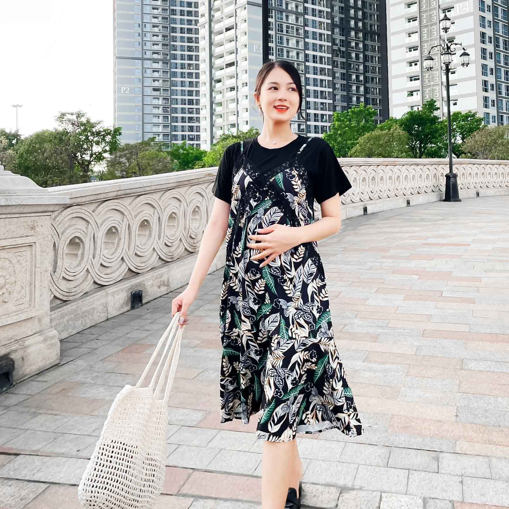 (SALE) Đầm bầu tay ngắn sọc caro (có túi) Baby Cherry DB004